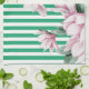 Summer, spring, green stripe magnolia print kitchen towel
