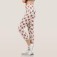 These leggings feature a pretty pattern of bright red summer strawberries with green leaves. The fruit images are placed on a crisp white background.