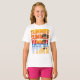This summer time graphic quote t-shirt features a palm tree beach scene at sunset.