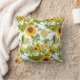 This pillow features a colorful collage pattern of bright gold sunflower images and green leaves and curly stems. The images are placed on a white background. This is a sunny, happy addition to any room! Be sure to see the matching products in our store. *Images included in this design are by LeCoq Designs.