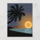 Summer sunset illustration with palm tree postcard