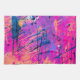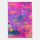 This colorful design features a bright summer sunset sky inspired palette in shades of hot pink, bright purple, marigold yellow-orange and deep sapphire blue paint splatters.