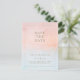 This summer sunset watercolor save the date postcard is perfect for your tropical beach boho wedding. Designed with minimalist, orange-peach coral and dusty blue watercolor, accompanied with simple rustic sandy gold typography. It's sure to match your modern bohemian coastal destination wedding vibes.