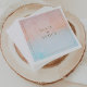 This summer sunset watercolor wedding napkin is perfect for your tropical beach boho wedding. Designed with minimalist, orange-peach coral and dusty blue watercolor, accompanied with simple rustic sandy gold typography. It's sure to match your modern bohemian coastal destination wedding vibes.