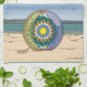This beach themed mandala features layers of seashells, sailboats, sand, sun, sea, and palm trees inside of a transparent beach ball to bring to mind the fun that comes with summer. Two different versions of this design have been provided so that you can choose which fits your style and folding preference. Just click the customize button to rearrange the images if you prefer a quarter fold display style over a half fold.