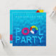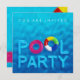 Customizable invitation template for kids pool party or summer cocktail pool party featuring blue swimming pool water and colorful inflatable rubber rings.