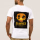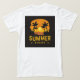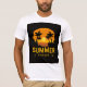 A vibrant summer T-shirt design featuring a tropical theme with palm trees, bright sunshine, and ocean waves. The artwork includes bold, cheerful colors like turquoise, yellow, and coral, complemented by minimalist fonts or playful hand-drawn lettering. Ideal for a casual, breezy look that celebrates the warmth and joy of summer.