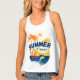 Women's All-Over Print Racerback Tank Top, White Piping, S