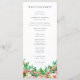 This tropical jungle themed wedding program features watercolor flowers and an elegant design. On the front, tropical leaves and flowers hang from the top of the wedding program. Below the watercolor floral, you can customize a template that includes the couple's names, wedding date, and ceremony details. On the back of the program, personalize the template to include the members of your wedding party. Tropical foliage blooms from the bottom of the program on the back. Find matching wedding stationery in our Tropical Floral wedding collection.