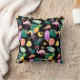 Summer Tropical Fun Pattern on Black Throw Pillow