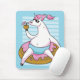 A cool summer unicorn on a donut float enjoying a cool drink hanging out in the pool.