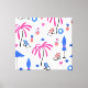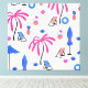 Dive into summer with palm trees and cocktails. Pink, coral, and blue hues.