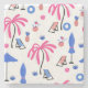 Dive into summer with palm trees and cocktails. Pink, coral, and blue hues.