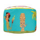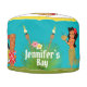 Summer vibes Vacation and Tiki bar inspired custom name, teal indoor pouf by PiccoGrande, affordable designer home decor.