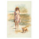 Painting of a Woman walking along a beach with her dog.