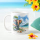 Summer vibes mug featuring a watercolor elephant on the beach. Customizable.