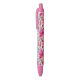 Very nice blue, or black ink pen. I will be buying more. The print was fine. I can easily see the print. The flowers look great.