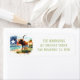 Summer vibes return address labels featuring a watercolor Texas Long Horn on the beach. Customizable.