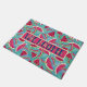 Bright slices of colorful watermelon tumble in a summery watercolor greens. Welcome is centered and your custom name is overlaid in trendy script. Add this cheerful mat to greet guests or customize for a housewarming gift. I created this design to evoke the best of the happy season.