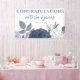 Summer Blue Grey Floral Wedding Banner for your Reception Accessories. Designed with watercolor flowers in shades of blue and soft grey, on a white background. The text includes: CONGRATULATIONS!, The Bride and Groom's First Names and Wedding Date. To personalize, simply insert your details into our easy template, replacing the sample text. Be sure to view the entire Summer Blue Grey Floral Wedding Collection for matching cards and accessories.
