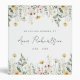 This design features a watercolor border of wildflowers in shades of gold, red, blue, and green.