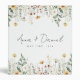 This design features a watercolor border of wildflowers in shades of gold, red, blue, and green. Perfect for spring and summer weddings.