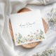 This design features a watercolor border of wildflowers in shades of gold, red, blue, and green. Perfect for spring and summer weddings.