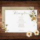 Simple, rustic and elegant, this design features a variety of summer's end dried wildflowers, including daisies in soft tan, green, white and yellow. The background is a craft brown watercolor wash. This card is part of the Summer Wildflowers & Daisies Wedding Suite of cards created by Simply Farmhouse Press. You can customize this card with ANY information your guests may need - directions, accommodations, attire, menu options, etc.