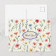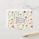 Pink, coral, blue, and yellow flowers drift across this thank you postcard. Very sweet and lovely.