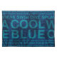 Words that mean summer: Tropical Breezes, Cool Blue and Tequila Sunrise combined with images of Monstera Leaves, Palm Trees, Hibiscus and create this graphic design. The napkins coordinate with the placements in the reversed color positions.