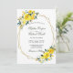 Elegant, yellow rose floral script gold frame wedding invitation.