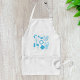 The apron is of very good quality. I used it while icing cookies. The dark colored icing washed off of the apron very well! The neck strap is sturdy and easy to resize on the adult size apron. The print was clear and well defined. I am glad I was able to personalize with name.