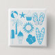 Celebrate the sunny vibes of summer with this charming button featuring a collection of iconic summertime symbols in a refreshing light blue design. From beach balls and flip-flops to ice cream cones and sunglasses, this graphic captures the essence of warm-weather fun.