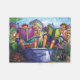 Summertime Reading Art by Traci Van Wagoner features a boy and a girl sitting in an urban backyard on a hot summer day with their feet in a cool tub, drinking lemonade, and reading books. A cat and a dog lay curled at their feet on the wood deck. Perfect for book lovers and bibliophiles of all ages.