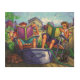 Summertime Reading Art by Traci Van Wagoner features a boy and a girl sitting in an urban backyard on a hot summer day with their feet in a cool tub, drinking lemonade, and reading books. A cat and a dog lay curled at their feet on the wood deck. Perfect for book lovers and bibliophiles of all ages.