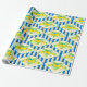 Summery Blue Stripes & Lemons and Leaves Pattern Wrapping Paper