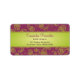 An exotic look that will brighten up any corporate identity package. Green paisley designs against violet purple make up the background of this address label. Contact information prints against a lime green gradient band. A sumptuous look for textile or interior designers, event coordinators or retail stores. Available in alternate colors with matching products.