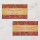 An exotic look that will brighten up any networking opportunity. Golden paisley designs against a rich orange make up the background of this business card. Contact information prints against a golden yellow band on both the front and back. A sumptuous look for textile or interior designers, event coordinators or retail stores. Available in alternate colors with matching products.