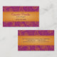 An exotic look that will brighten up any networking opportunity. Orange paisley designs against rich violet make up the background of this business card. Contact information prints against a gradient orange band on both the front and back. A sumptuous look for textile or interior designers, event coordinators or retail stores. Available in alternate colors with matching products.