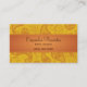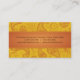An exotic look that will brighten up any networking opportunity. Orange paisley designs against golden yellow make up the background of this business card. Contact information prints against a rich orange band on both the front and back. A sumptuous look for textile or interior designers, event coordinators or retail stores. Available in alternate colors with matching products.