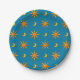 Yellow sun and moon pattern on blue background custom paper plate