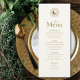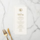 At the top of the menu lies a stunning star and moon emblem, personalized with the couple’s initials—a subtle yet powerful symbol of unity and timeless love. Flip it over to find the same celestial design, paired with the couple’s full names and wedding date, making it both a functional detail and a keepsake-worthy memento.