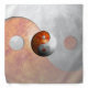 Featuring a motif based on the ancient Taoist Yin-Yang symbol, one half shows Moon's grey surface as seen from Earth and the other half shows a stylized molten sun filled with reds, yellows, and oranges.