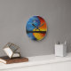 Night and day was a big influence over the idea of yin and yang. Let this decorative clock represent both and add some color to your living or working space. This was an original painting by Devon Baldwin