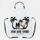 Capture the essence of summer romance with our charming design featuring a couple walking barefoot on the sandy beach at sunset. Coconut palms sway in the background, birds fly across the sky, and the couple holds their shoes in hand, embodying the relaxed and joyful spirit of the season. The phrase "Enjoy Summer: Sand & Sunshine" perfectly complements this serene scene, making it an ideal choice for summer apparel.