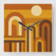 Sun & Arches Mid Century Modern Geometric Design Square Wall Clock