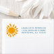 This baby shower return address label is decorated with a yellow watercolor sun.