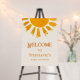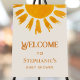 This cute baby shower welcome sign is decorated with a yellow watercolor sun on a soft cream background.