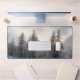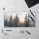Sun behind spruce trees desk mat