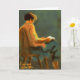 A fully clothed figure study. A woman with short hair comfortably sits on a wooden chair while reading a book. The sun is shining on her face while she is turned mostly away from view.